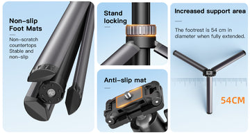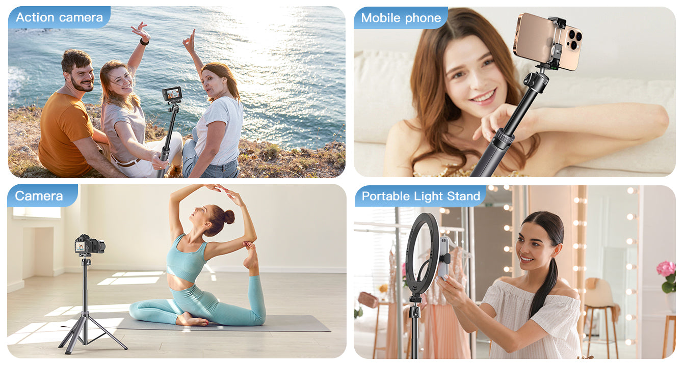 【COMAN MT66 – Perfekte Unterstützung für Aufnahmen mit mehreren Geräten】Das COMAN MT66 Stativ ist mit Handys, Kameras und Action-Kameras kompatibel. Das tragbare MT66 Stativ mit 360°-Kugelkopf ist leicht und dennoch stabil und bietet mit einer Tragkraft von 1 kg Platz für verschiedene Geräte. Die hochwertige Aluminiumlegierung sorgt für Langlebigkeit und Stabilität. Dank der Bluetooth-Fernbedienung können Sie sofort und ohne Verzögerung mit der Aufnahme beginnen.