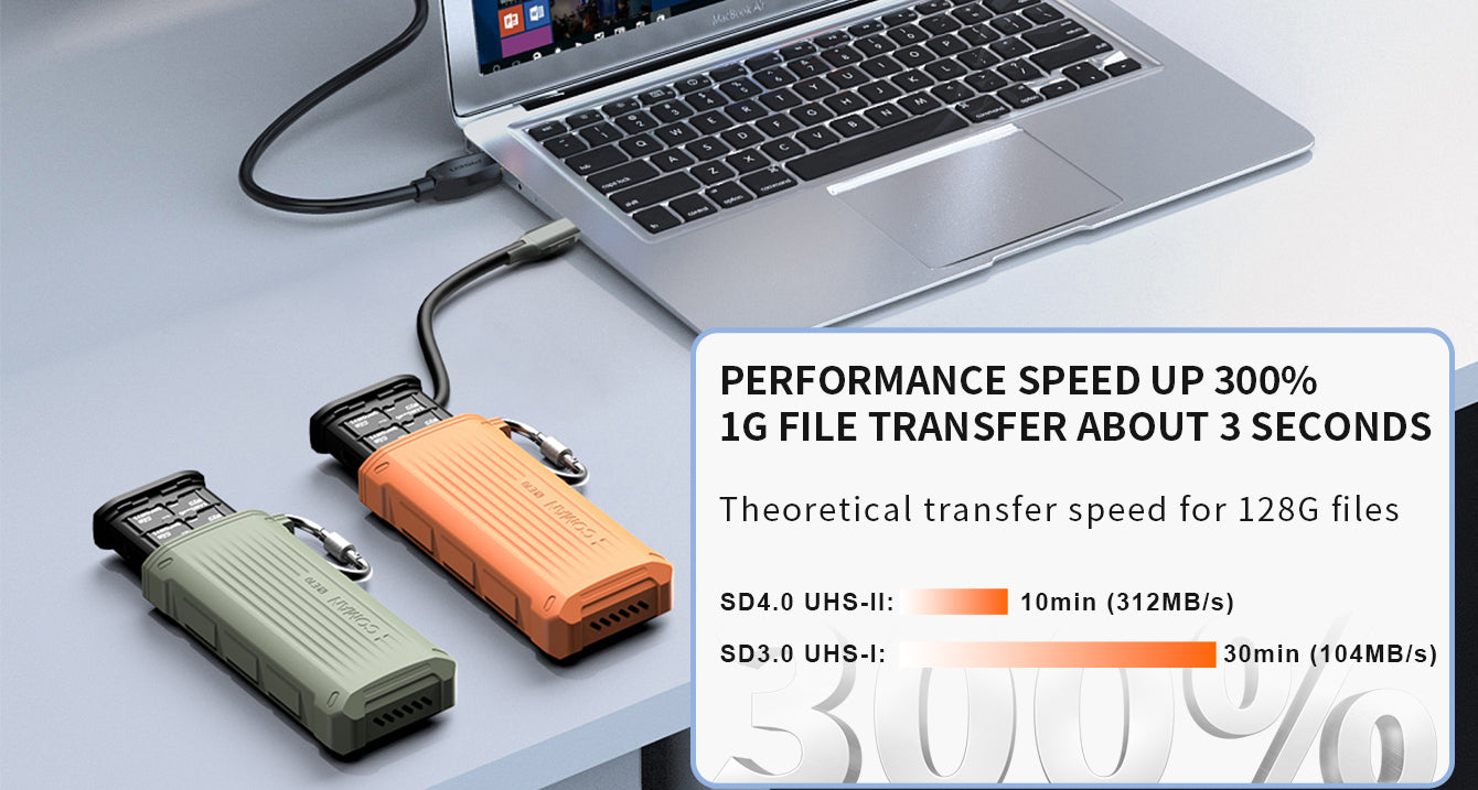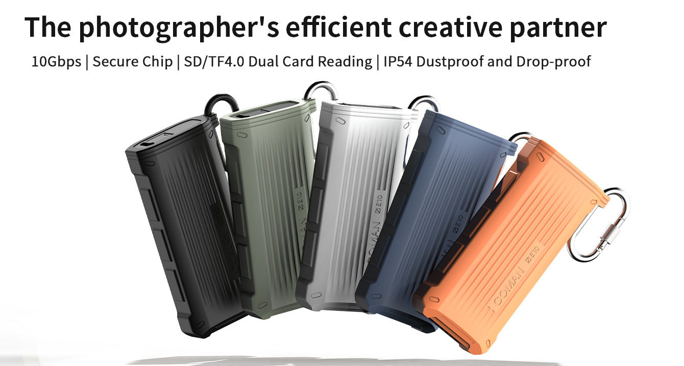 Coman E10 Hochgeschwindigkeitskartenleser | Dual SD/TF -Slots, USB 3.1 10gbit/s, IP54 wasserdicht, tragbar
