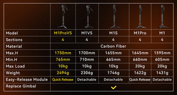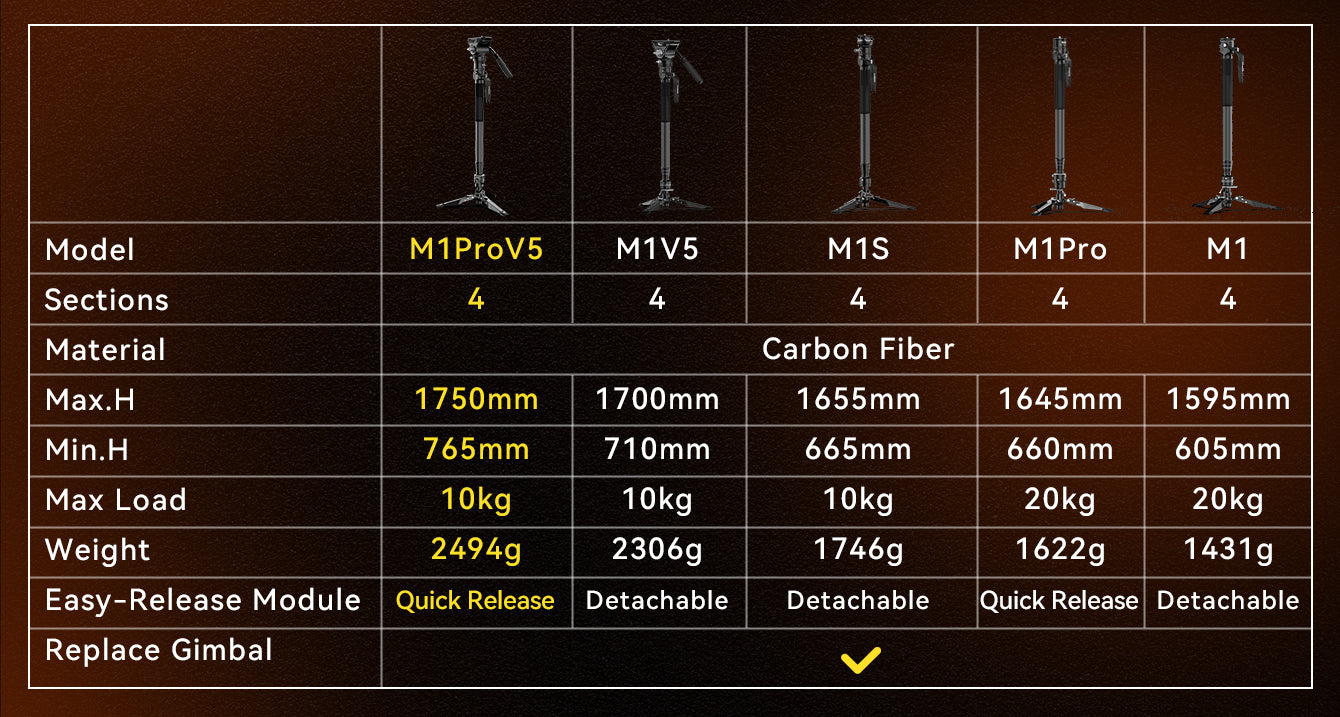 【COMAN M1Pro V5 – World's First One-Click, Four-Section Monopod】Equipped with a self-developed one-click lifting system and an innovative four-section carbon fiber leg, the M1Pro V5 offers unmatched convenience in height adjustment. With just one press, extend or retract your monopod instantly — boosting setup speed by up to 300% compared to traditional designs.