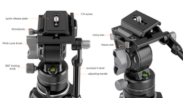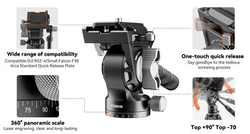 【Arca Swiss Quick Release Plate】Equipped with an Arca Swiss quick release plate, this tripod head allows for fast camera setup and removal, providing seamless transitions during shoots.