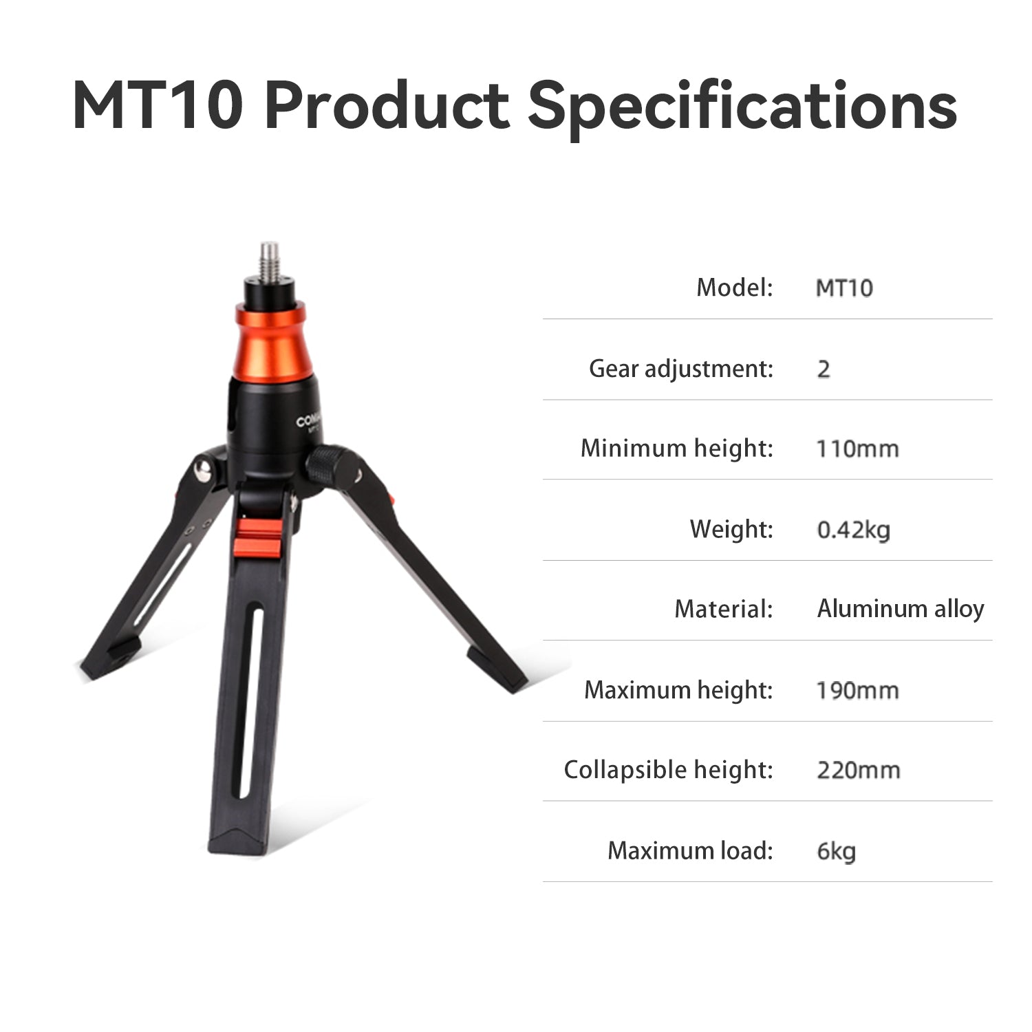 COMAN MT10 Mini Tripod Stand Base – 155mm Extendable, 6kg Load, Quick Lock