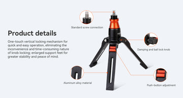 The MT10 tripod now features 155mm extended support feet and one-key vertical lock—no more shaky setups or time-wasting knob locks.