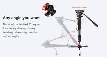 【Shoot Freely, Tilt Instantly】Enjoy 90° tilt capability for high or low-angle shots. A push-button system lets you adjust angles effortlessly with a single twist.