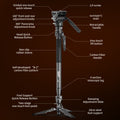 【Dual Quick-Release Modules for Seamless Switching】Engineered with quick-release modules at both top and base, this monopod enables instant transitions between ground pod and monopod mode. It's ideal for dynamic shooting scenarios and versatile production setups.