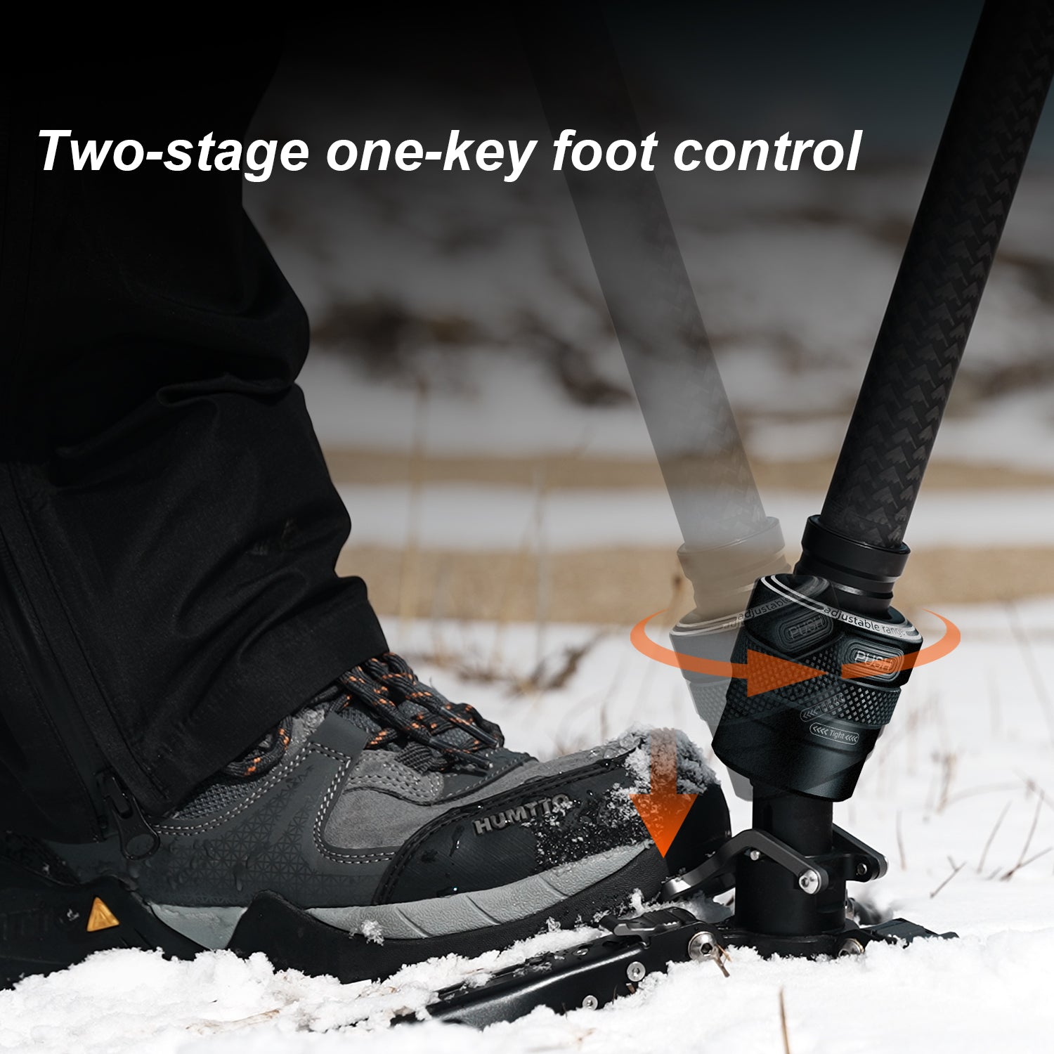 【Stable Support Feet & Ergonomic Foot Control】Reinforced 600g steel foot supports (190mm length) provide a solid base on uneven terrain. A two-stage foot-release mechanism adds ease and control, allowing rapid adjustments with a simple press.