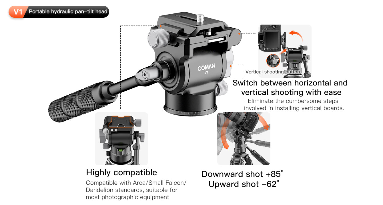 COMAN V1 Portable Hydraulic Head | Mini Camera Gimbal, Smooth Motion