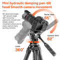 【360° Pan & Wide Tilt Range】Achieve versatile shooting angles with 360° smooth panoramic rotation and a tilt range of +85°/-62°. Capture low-angle, high-angle, and sweeping shots effortlessly. The hydraulic damping ensures motion remains consistent and smooth, perfect for storytelling, travel videos, or cinematic projects.