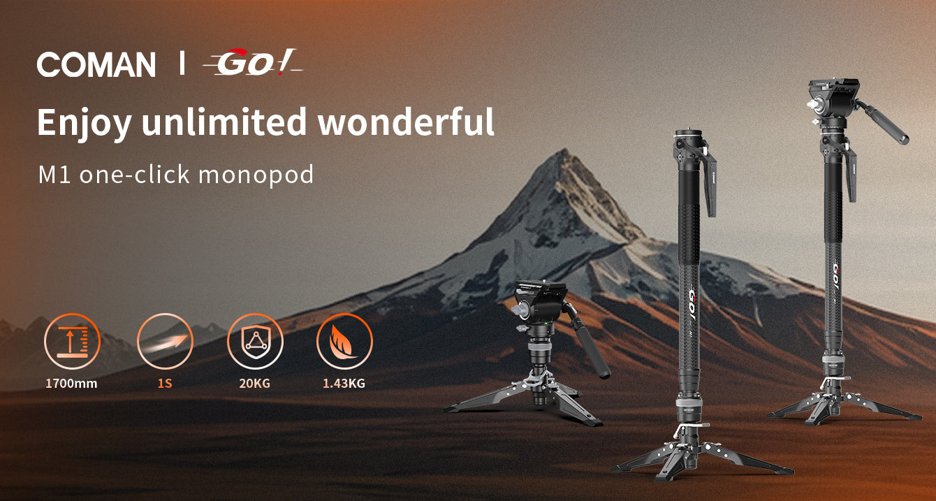 【COMAN M1V5 – Integrated Hydraulic Head & Four-Section Carbon Monopod】